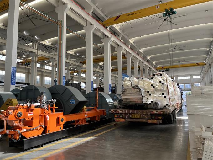 今日,又一批重磅設(shè)備踏上征途!一套專為2500噸鋁型材擠壓機(jī)量身定制的冷床