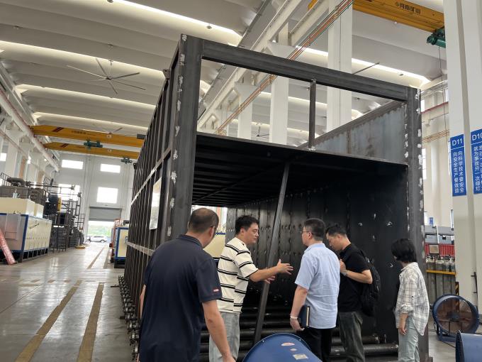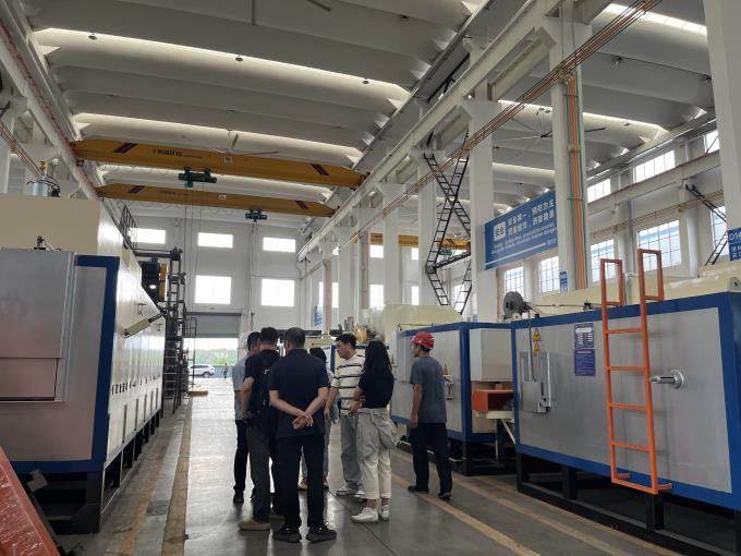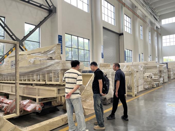 在業(yè)務(wù)部陳經(jīng)理的陪同下,帶客戶們參觀了鋁型材擠壓設(shè)備成品區(qū),以及設(shè)備裝